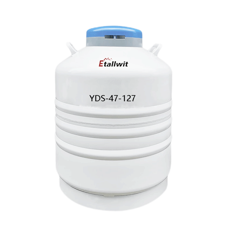 Cryogenic Storage 低溫儲存桶 產品說明 液態氮容量(L):47 空重(公斤):18.2 頸部開口(mm):127 外徑(毫米):508 靜態蒸發率(L/天):0.36 靜態保持時間(天):130 參考影片